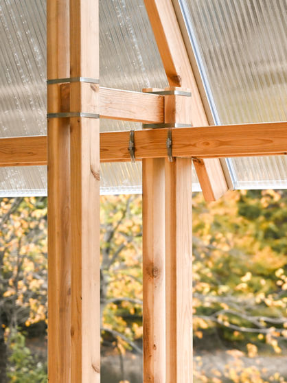 Our method uses tensioned straps and friction pads that clamp wood members into compression. Structural stability emerges from friction rather than penetration, enabling joints to perform efficiently while remaining fully reversible.
